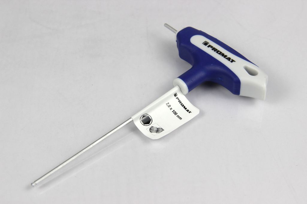 Promat Stiftschlüssel Quergriff 2 mm x 100 mm Kugelkopf Seitenabtrieb