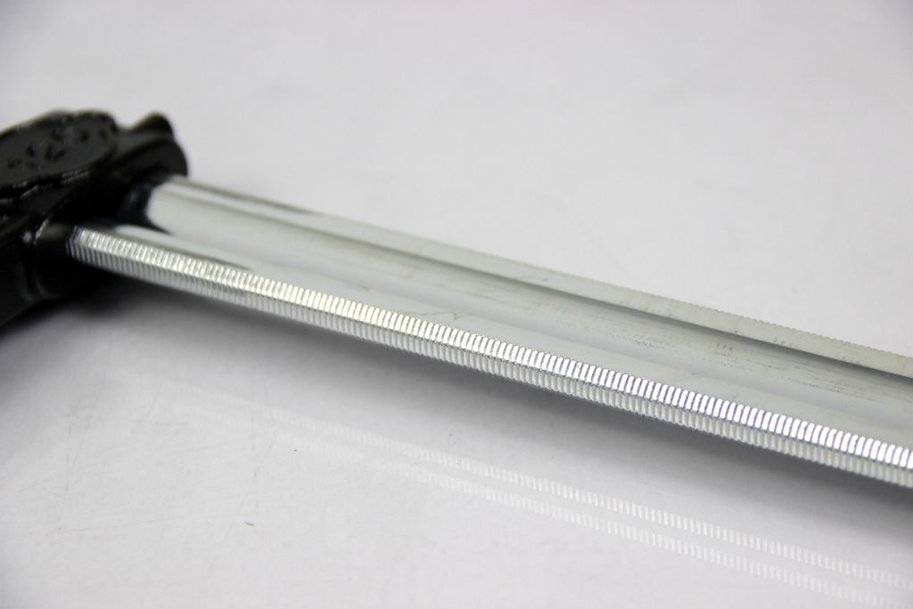 Mit einer Spannweite von 1000 mm ist sie ideal für große Werkstücke geeignet. Die hohlprofilierte Stahlschiene sorgt für eine hohe Verwindungssteifigkeit, während der ergonomische Holzgriff ein ermüdungsfreies Arbeiten ermöglicht. Eine integrierte Rutschsicherung am Gleitbügel garantiert maximale Sicherheit unter Last.