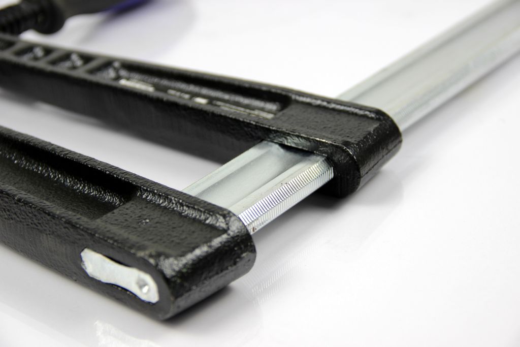 Die Schiene aus hochwertigem Profilstahl ist verzinkt und 6-fach geriffelt, was zusammen mit der integrierten Rutschsicherung für maximale Stabilität sorgt. Die Arme aus robustem Temperguss halten auch hohen Belastungen stand, während der ergonomische 3-Komponenten-Griff eine kraftvolle und komfortable Bedienung ermöglicht.
