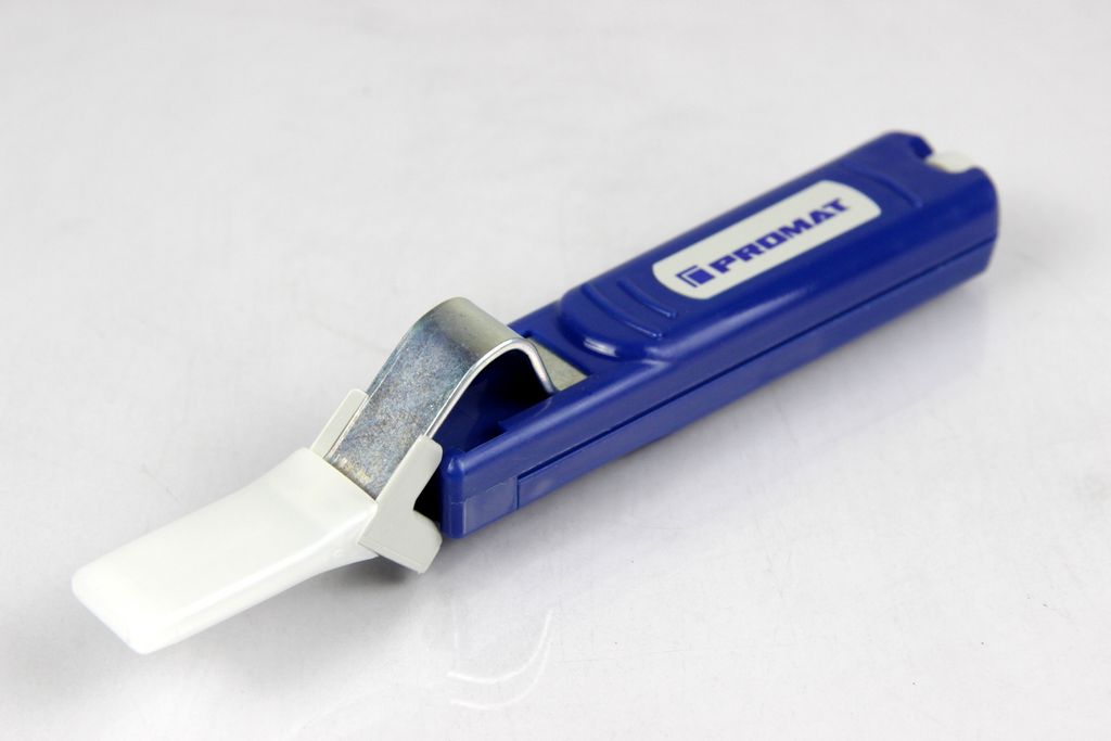 Dieses professionelle VDE-Abisoliermesser von Promat ist ein spezialisiertes Sicherheitswerkzeug für das präzise Abmanteln und Abisolieren von Kabeln. Es ist für Arbeiten an unter Spannung stehenden Anlagen bis 1000 V zugelassen und bietet durch seine geprüfte Isolierung maximalen Anwenderschutz nach internationalen Sicherheitsnormen.