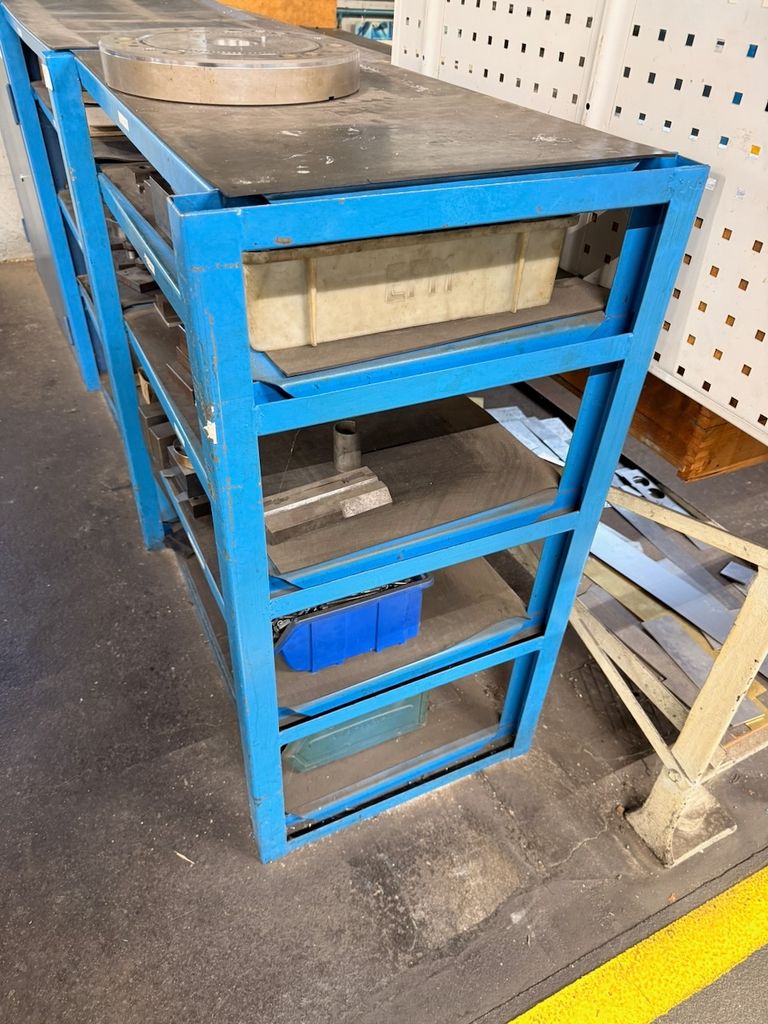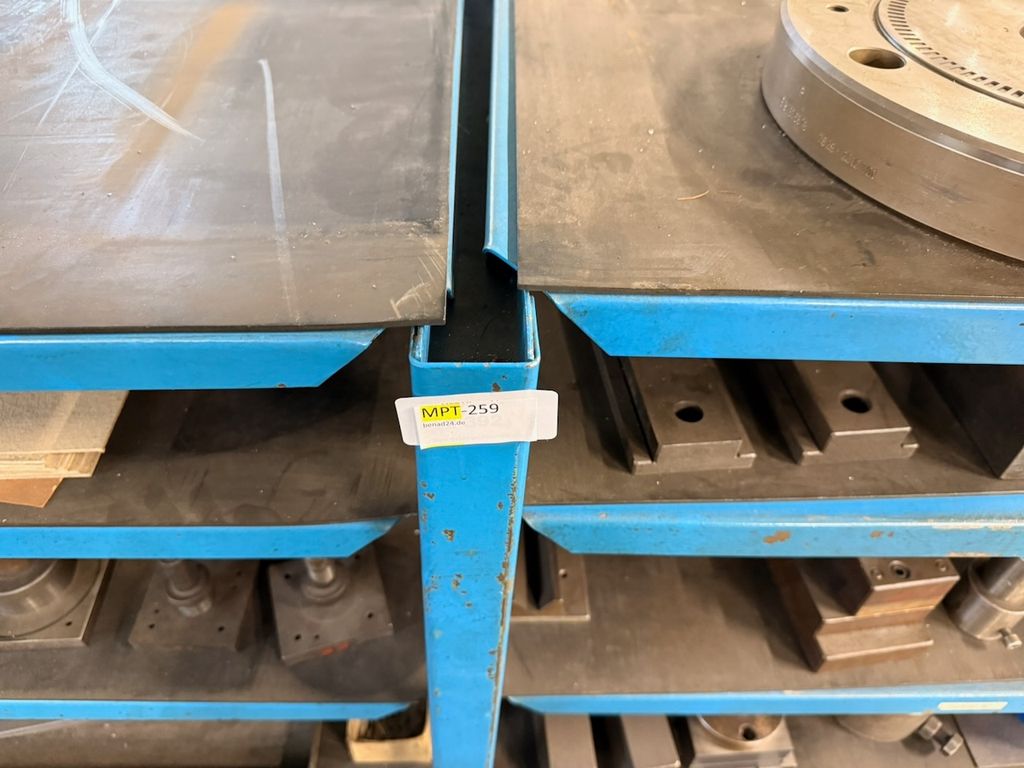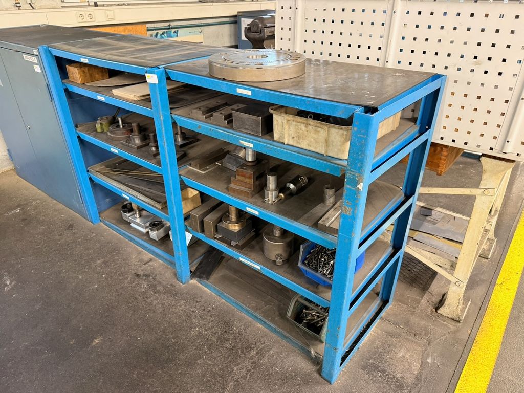 Stabiles Werkstatt- und Lagerregal aus Stahlkonstruktion mit mehreren Ablageebenen. Geeignet zur Lagerung von Werkzeugen, Formen oder Maschinenteilen. Gebraucht, mit deutlichen alters- und nutzungsbedingten Gebrauchsspuren (Lackabrieb, Kratzer), konstruktiv stabil. Verkauf erfolgt ohne Inhalt.