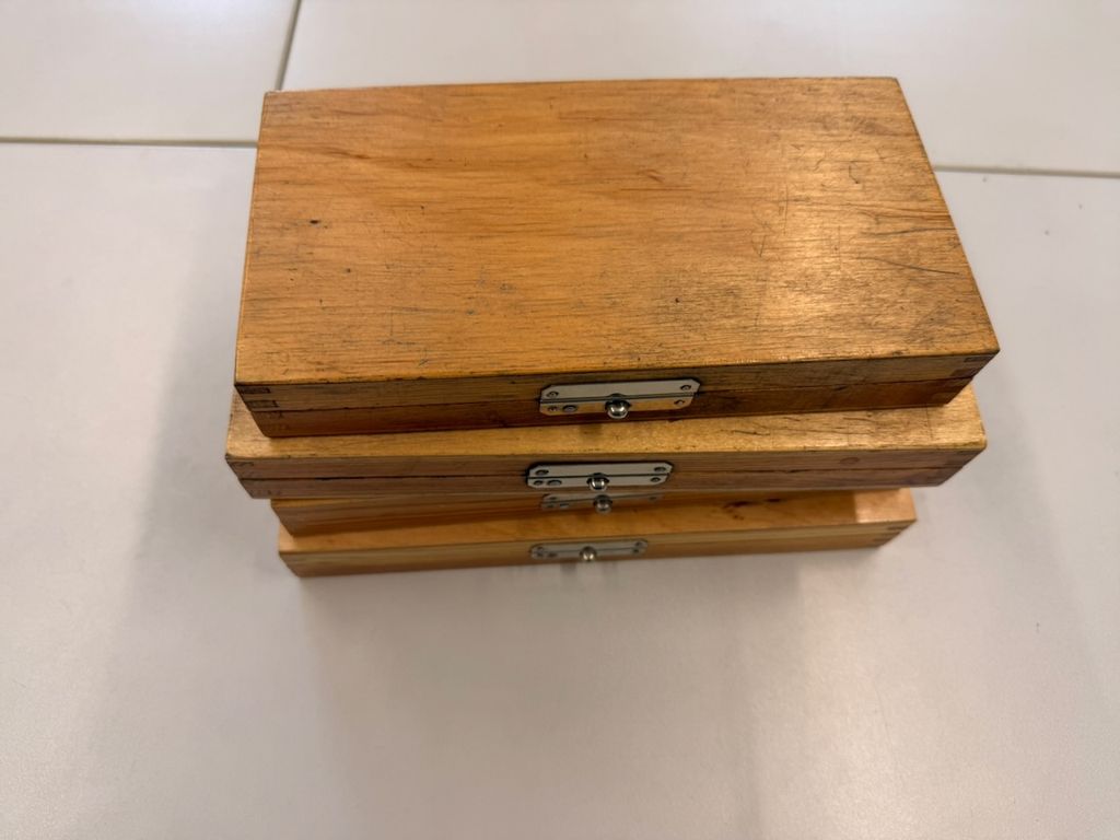 • Etuis: Holz, teils mit Zubehör / Einstellmaß