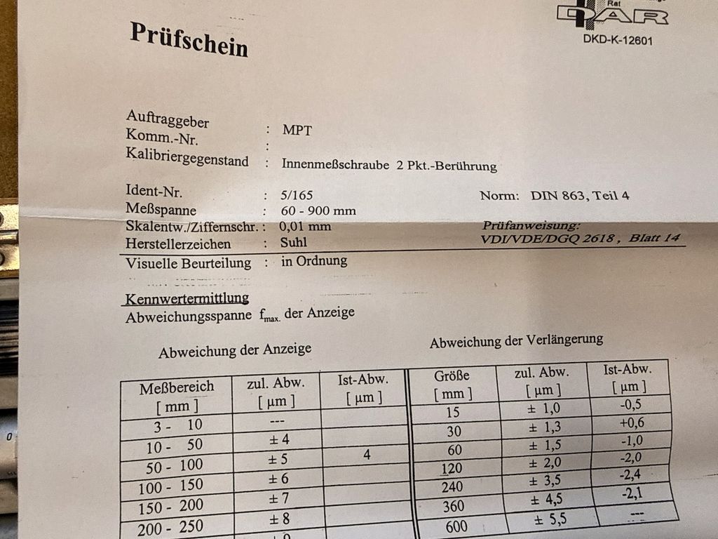 Suhl Innenmikrometer-Satz 60–900 mm · 0,01 mm
