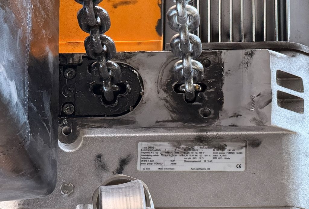 Die Anlage ist mit einem elektrischen Kettenzug ausgestattet.