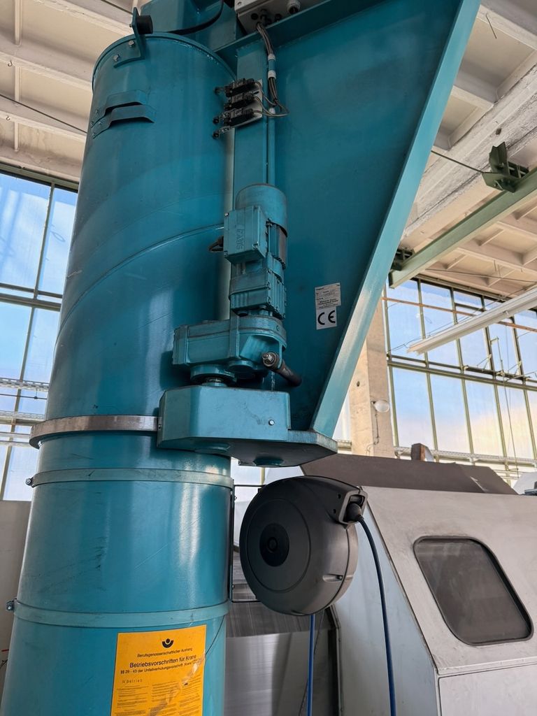 Anlage bestehend aus Säule, Ausleger und elektrischem Kettenzug.