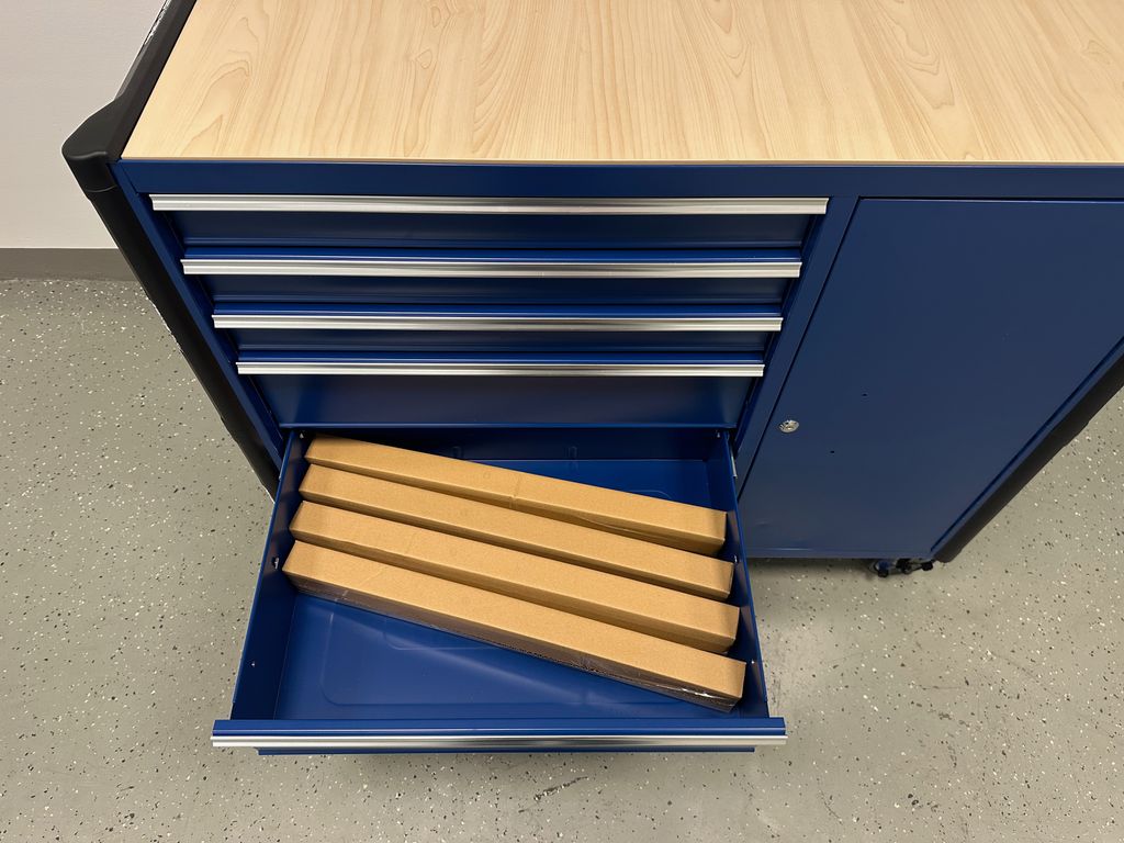 Mit sechs kugelgelagerten Schubladen, einer stabilen MDF‑Arbeitsplatte und einer Gesamttragfähigkeit von 400 kg bietet sie viel Stauraum und eine robuste Arbeitsfläche.