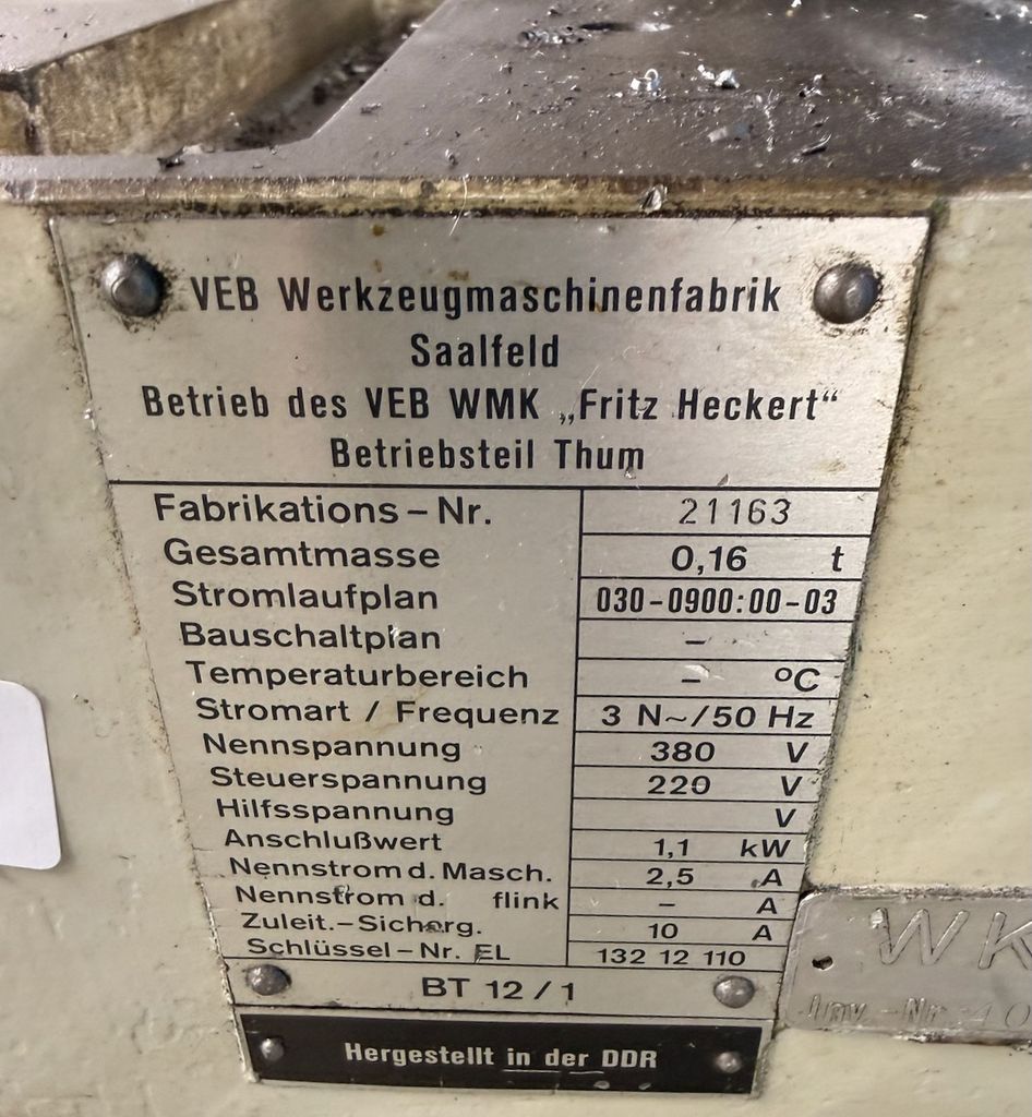 Hersteller: VEB Werkzeugmaschinenfabrik Saalfeld