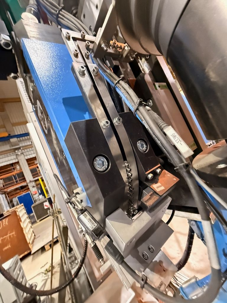 Montageanlage wie abgebildet, inklusive angebauter Komponenten und Steuerung.