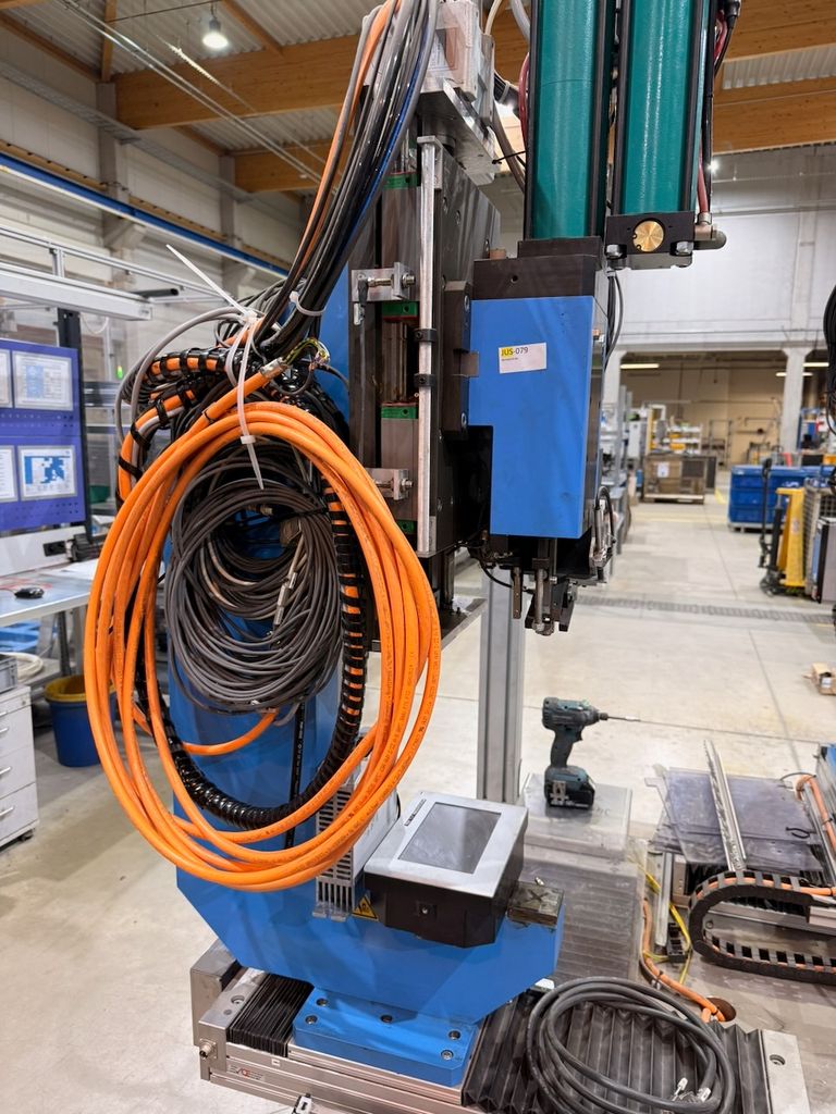 Montageanlage wie abgebildet, inklusive angebauter Komponenten und Steuerung.