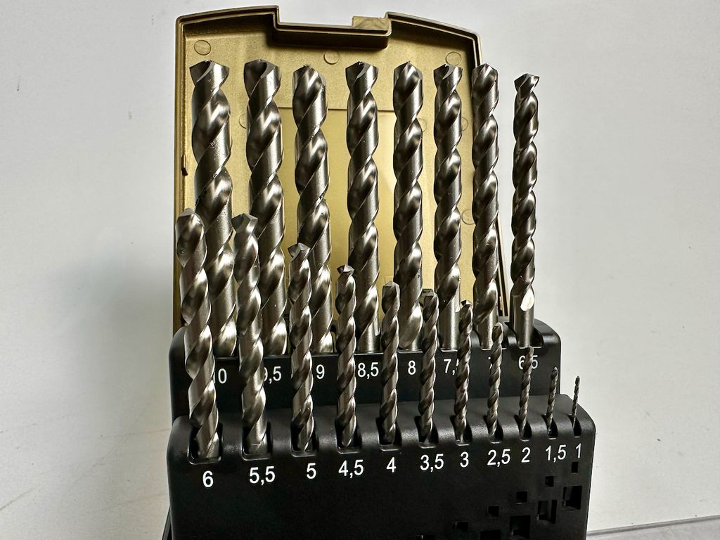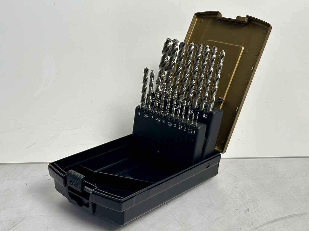 Geliefert wird der Satz in einer robusten Metallkassette zur sicheren Aufbewahrung und schnellen Auswahl des passenden Bohrers.