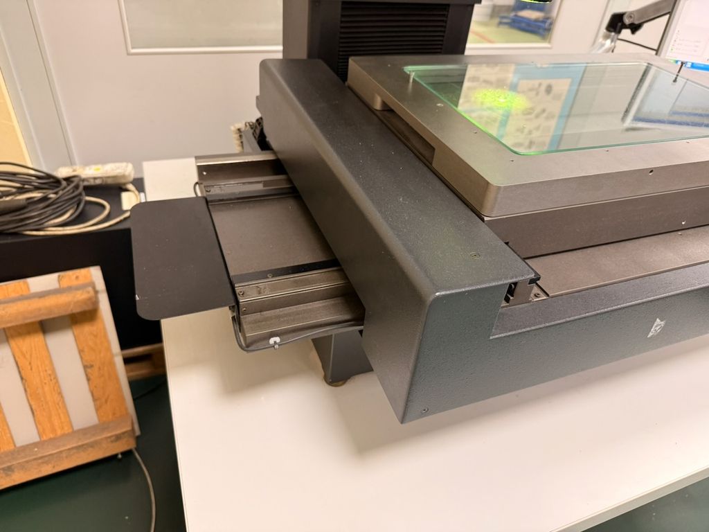 Optisches CNC-Koordinatenmessgerät Werth OPTIMUS 300 mit motorisch verfahrbaren Achsen X, Y und Z. Baujahr 2010. System mit Video-Bildverarbeitung zur optischen Konturerkennung sowie motorischer Positionierung.