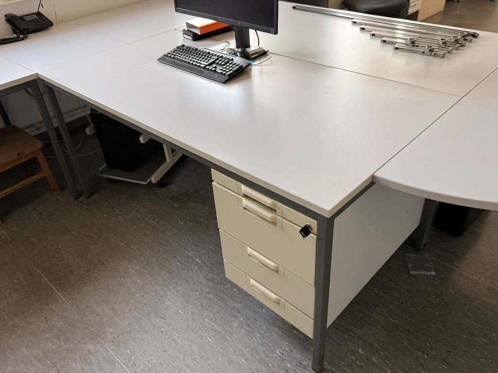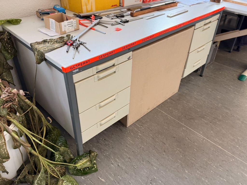 • Schreibtisch inkl. fest verbautem Unterbauschrank