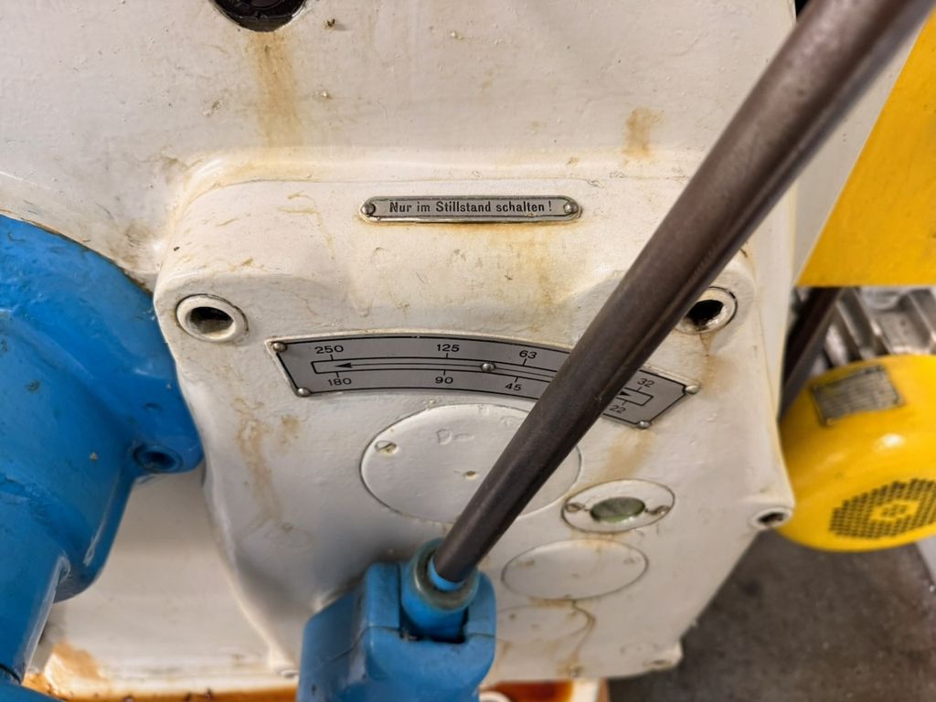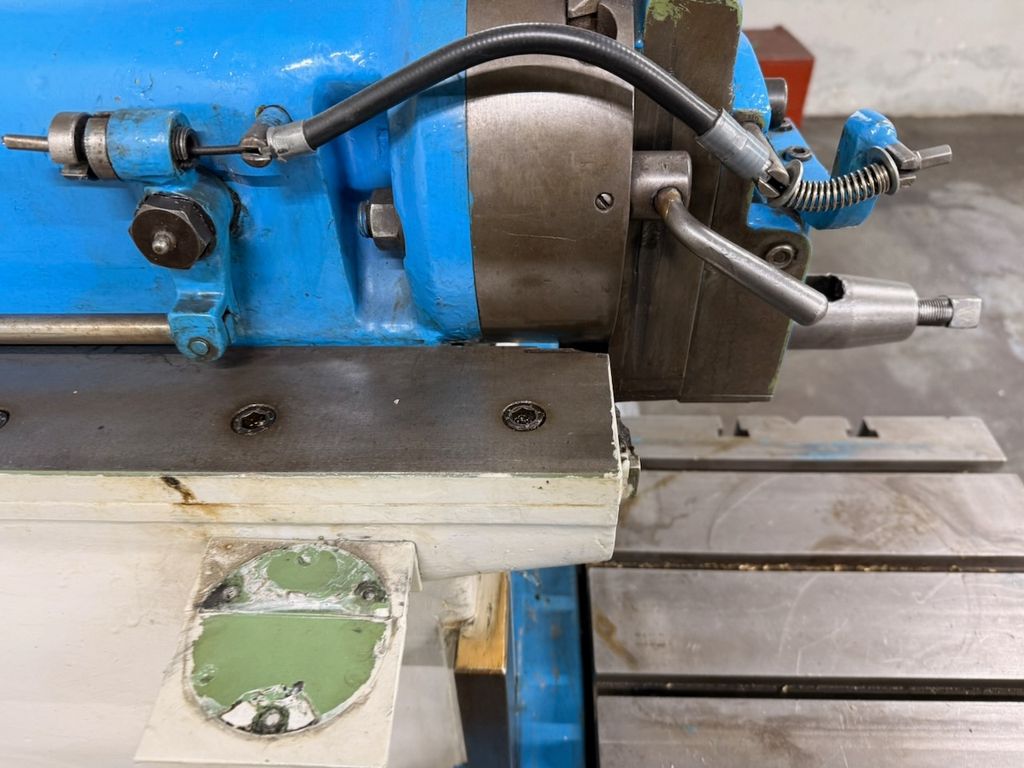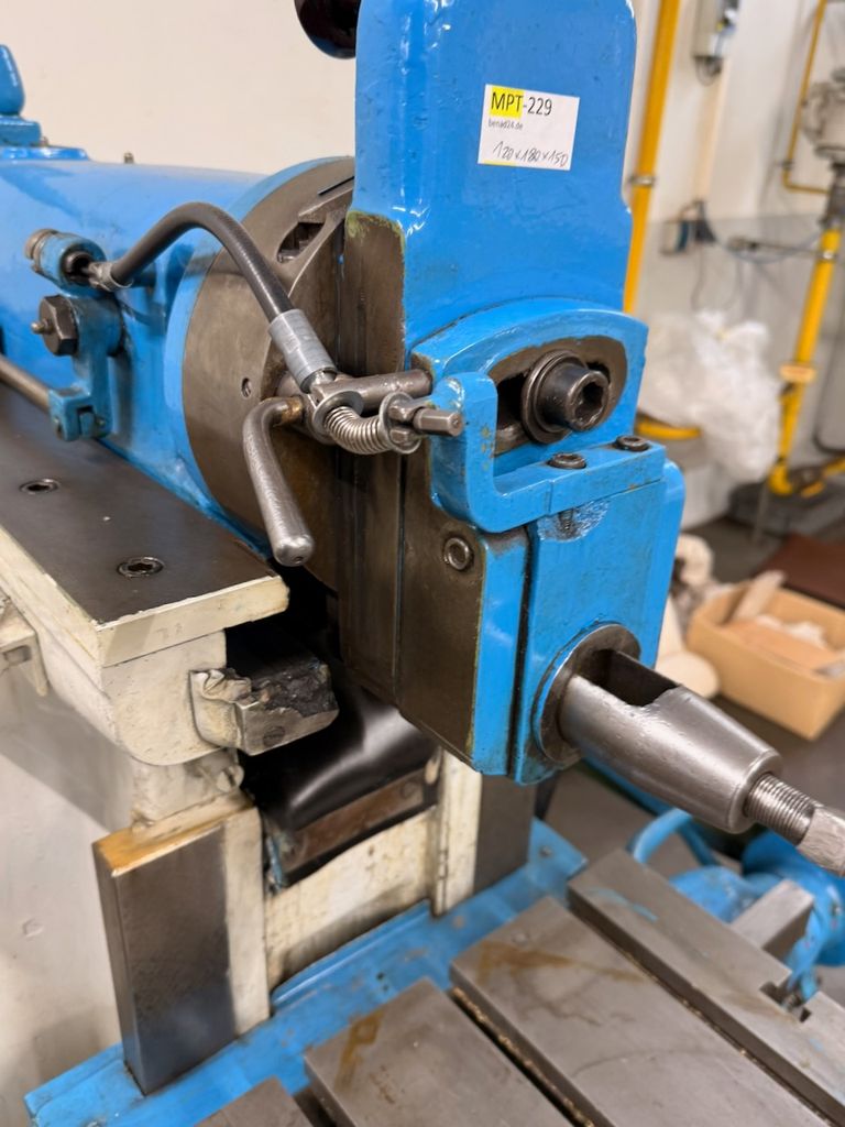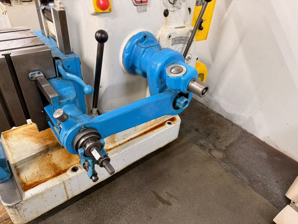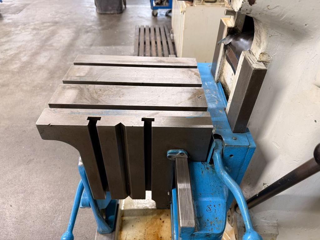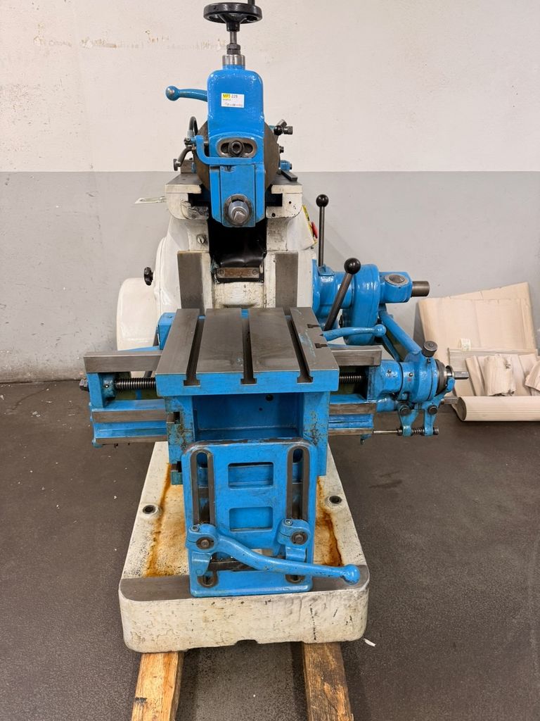 Maschine mit Kreuztisch, manuelle Verstellungen und klassischer mechanischer Bauweise.