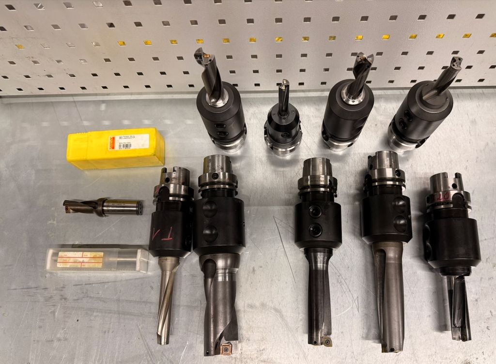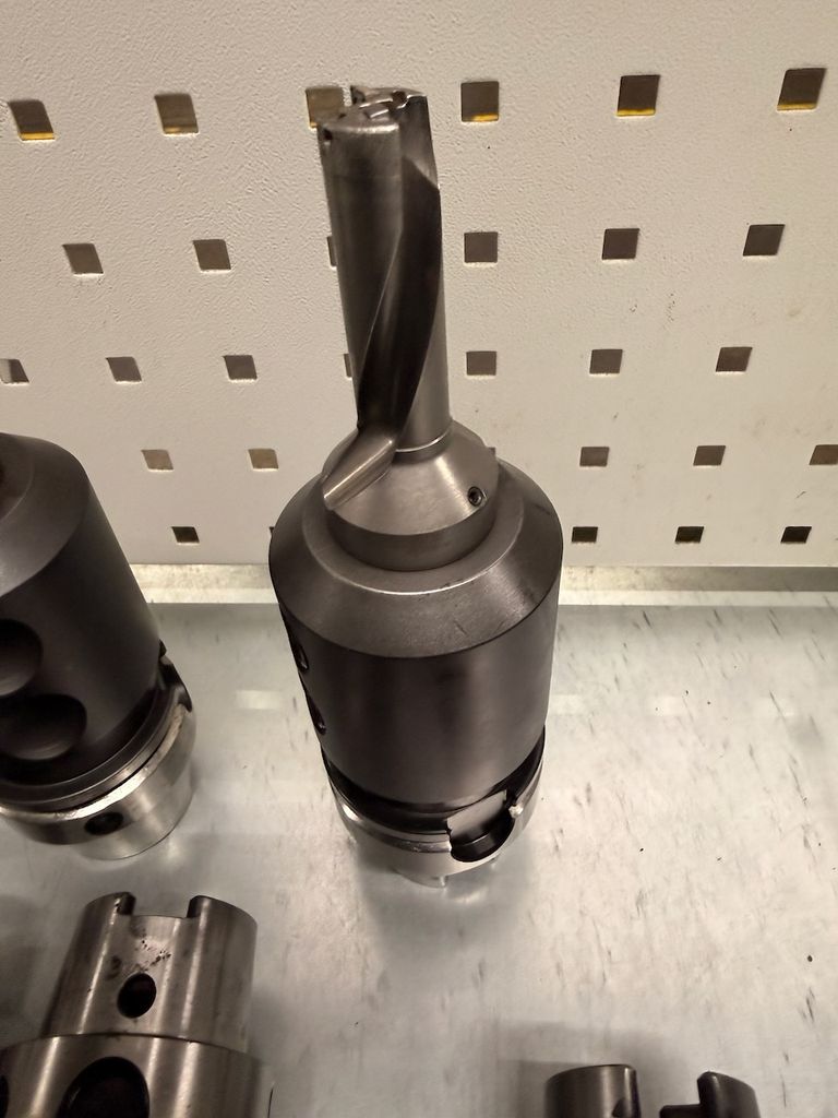 Posten mit Vollbohrern (VHM / Hartmetall) und WSP-Vollbohrern in HSK-63-Aufnahmen.
