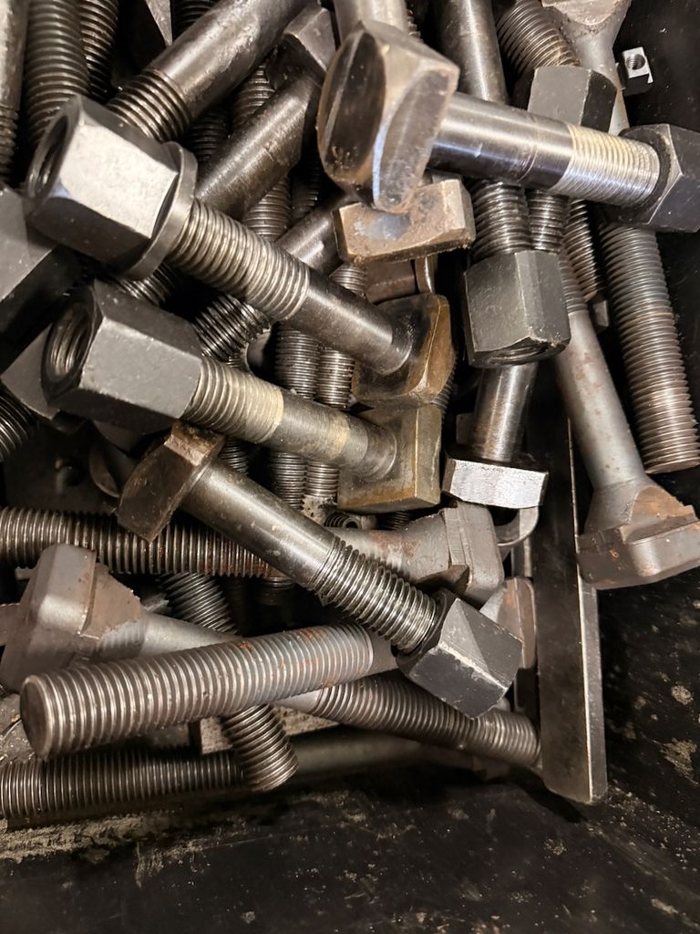 Zubehörkiste mit zahlreichen Spannschrauben, Muttern und T-Nutensteinen