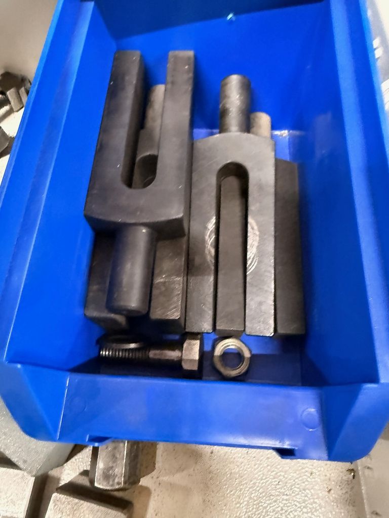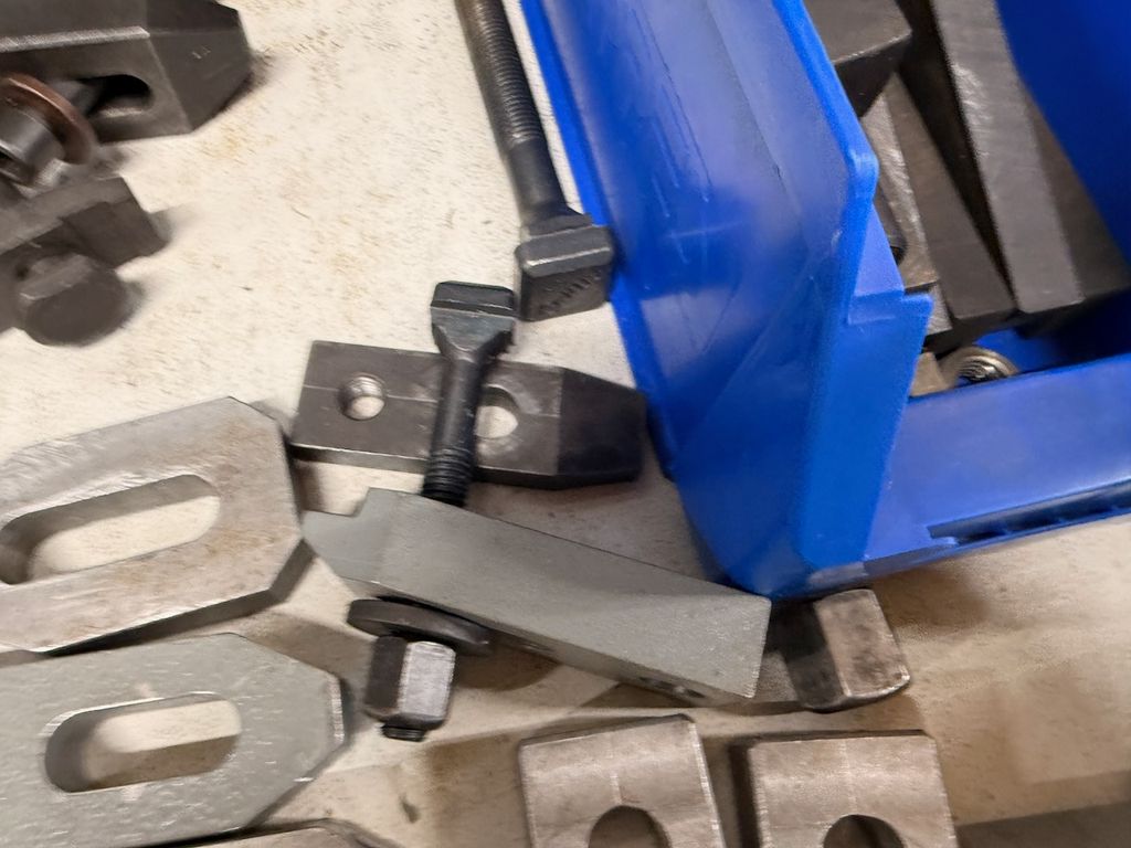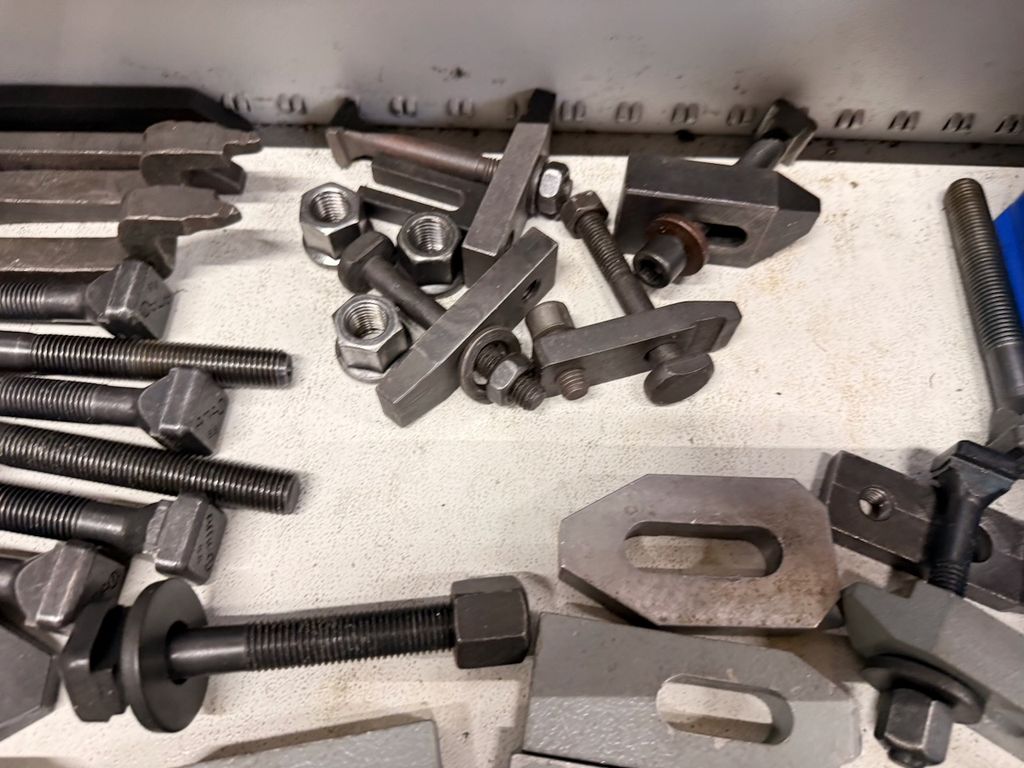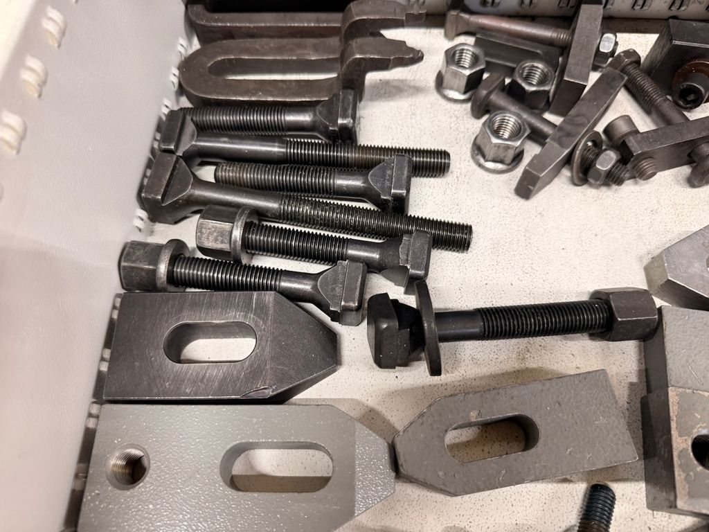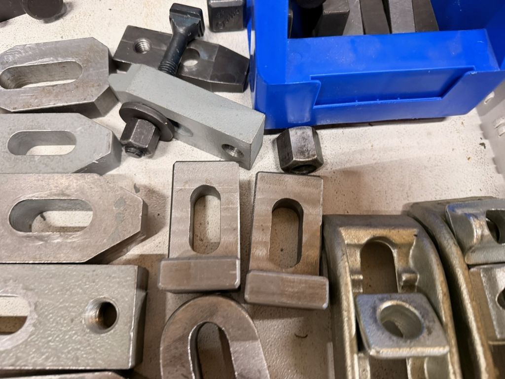 Posten aus verschiedenen Spannpratzen, Auflageelementen, Niederzughaltern und T-Schrauben für Fräsmaschinen und Vorrichtungsbau.