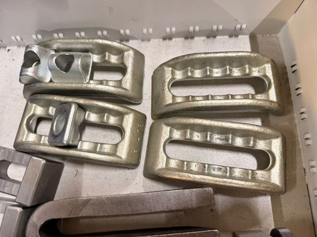 4 schwere Niederzug-/Spannbriden in Gussform