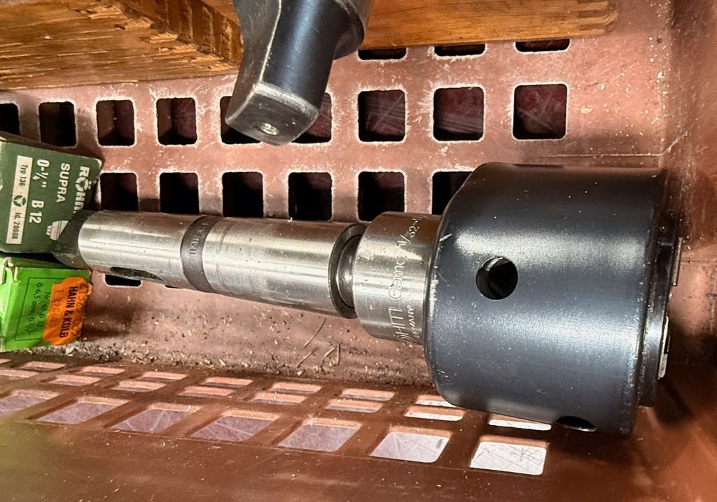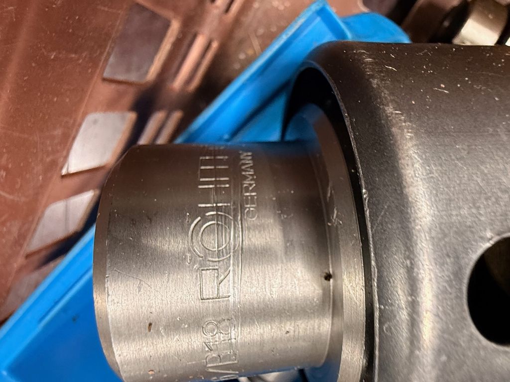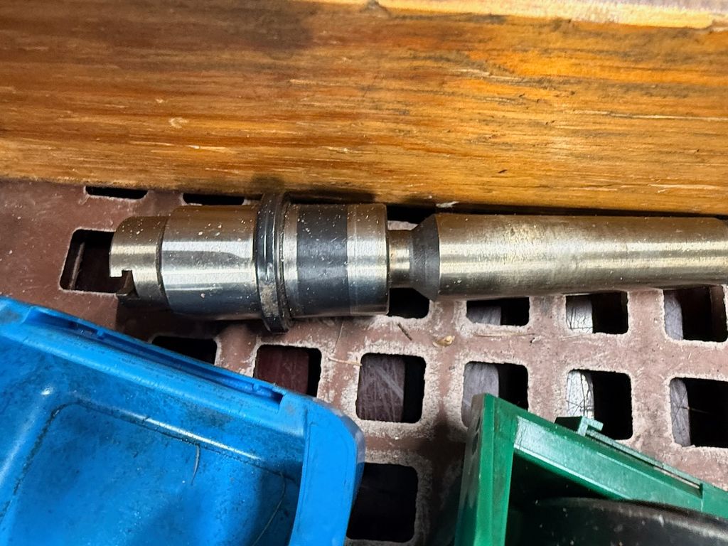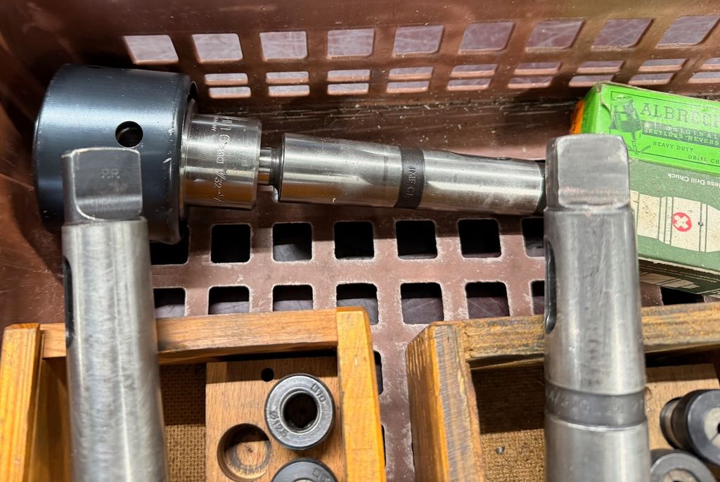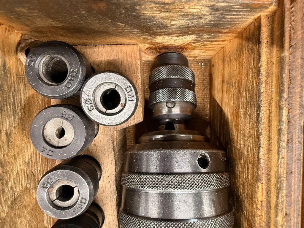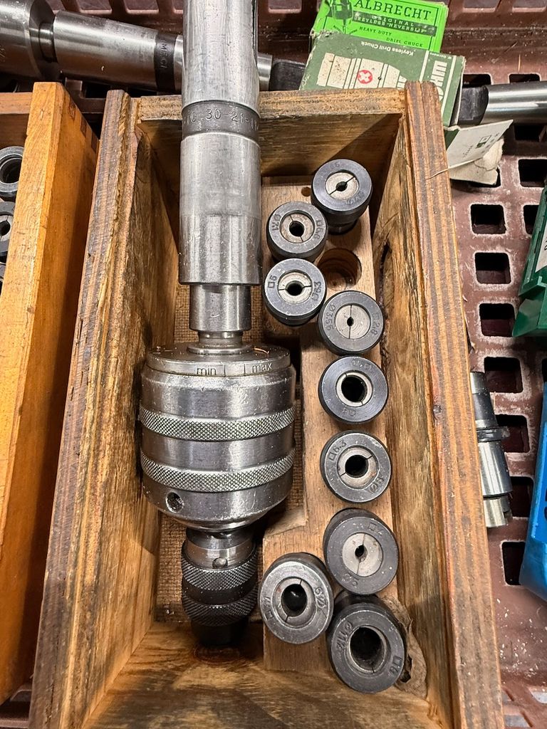 Werkzeugposten bestehend aus vier Gewindeschneidfuttern, einem Bohrfutter sowie diversem Zubehör (u. a. Spannhülsen / Einsätze).
