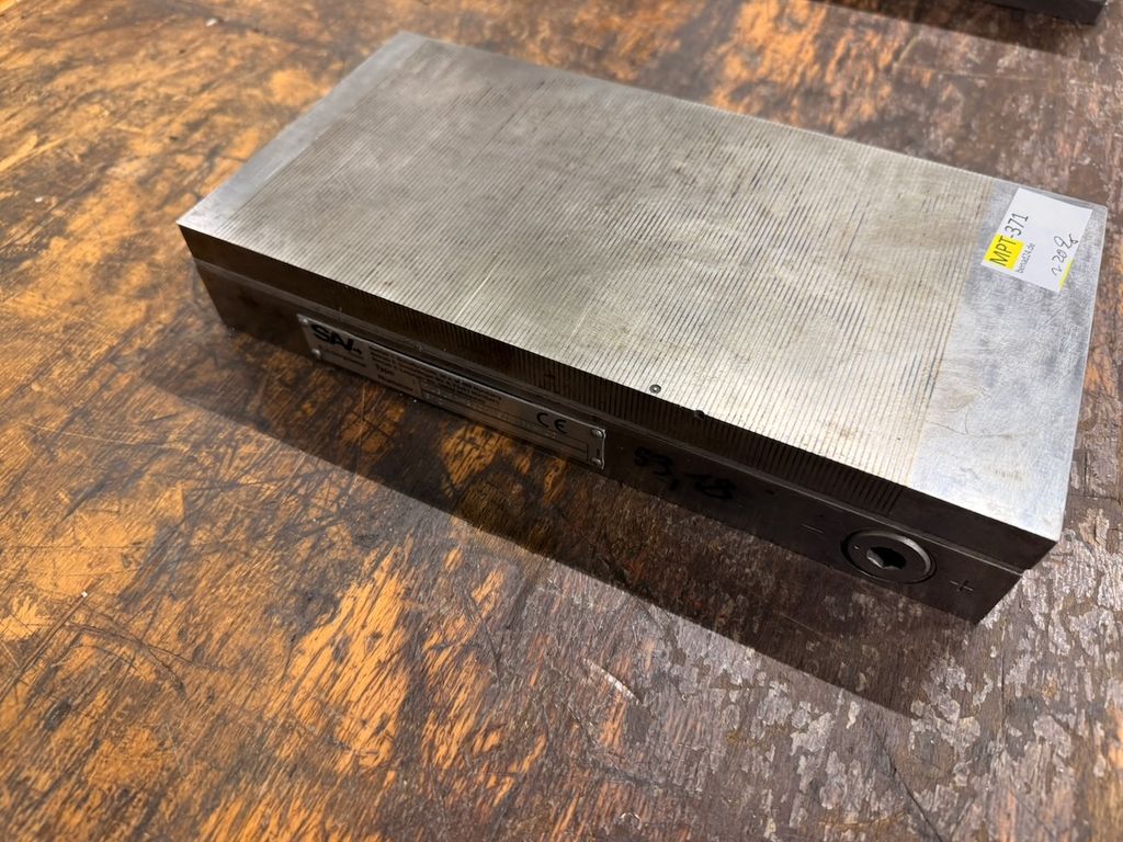 Permanent-Magnetspannplatte mit Längspolteilung. Ausgelegt für Spannen ferromagnetischer Werkstücke, z. B. bei Schleif- oder leichten Fräsarbeiten.