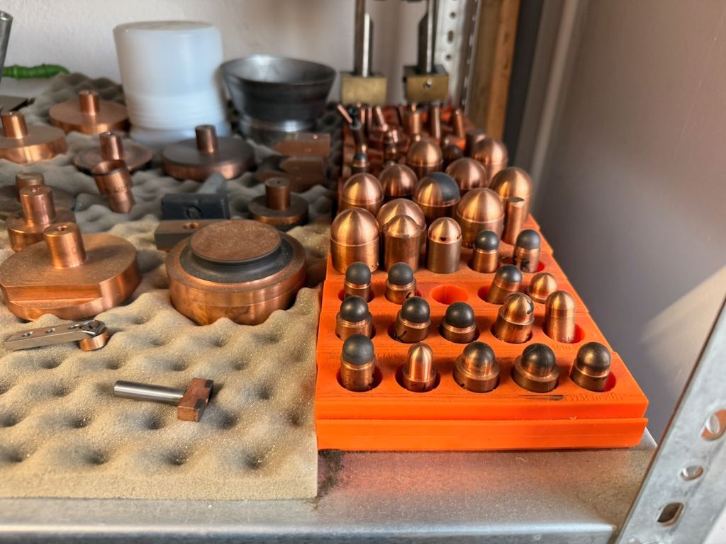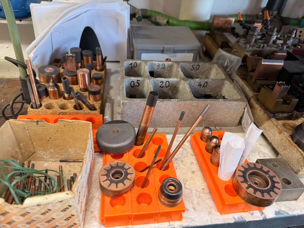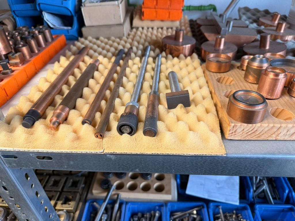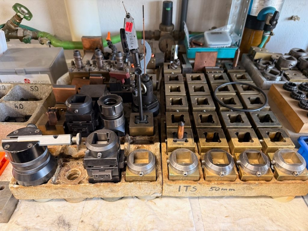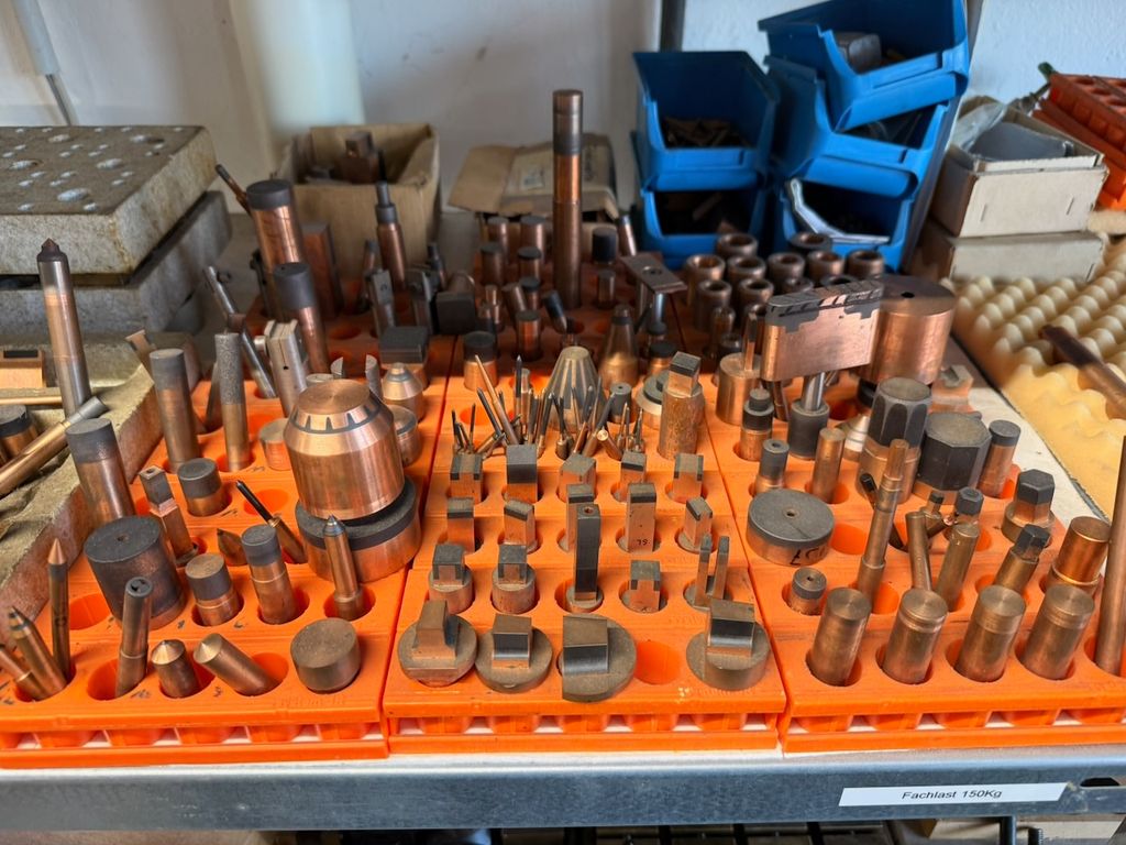 umfangreiches Werkstattkonvolut aus dem Bereich Senk- und Drahterodiertechnik sowie Werkzeugbau, bestehend aus hochwertiger Original-Spanntechnik von EROWA und System 3R, einem sehr großen Bestand an Kupfer-Elektroden, Elektrodenhaltern, Kupfermaterial sowie weiterem Zubehör.