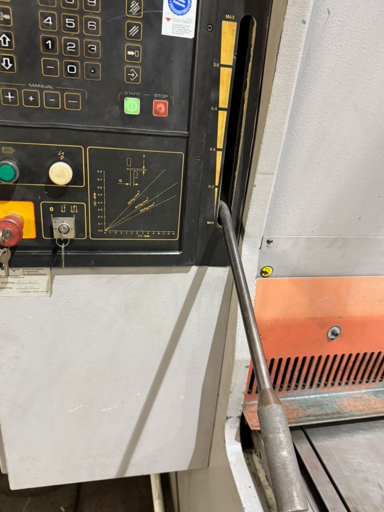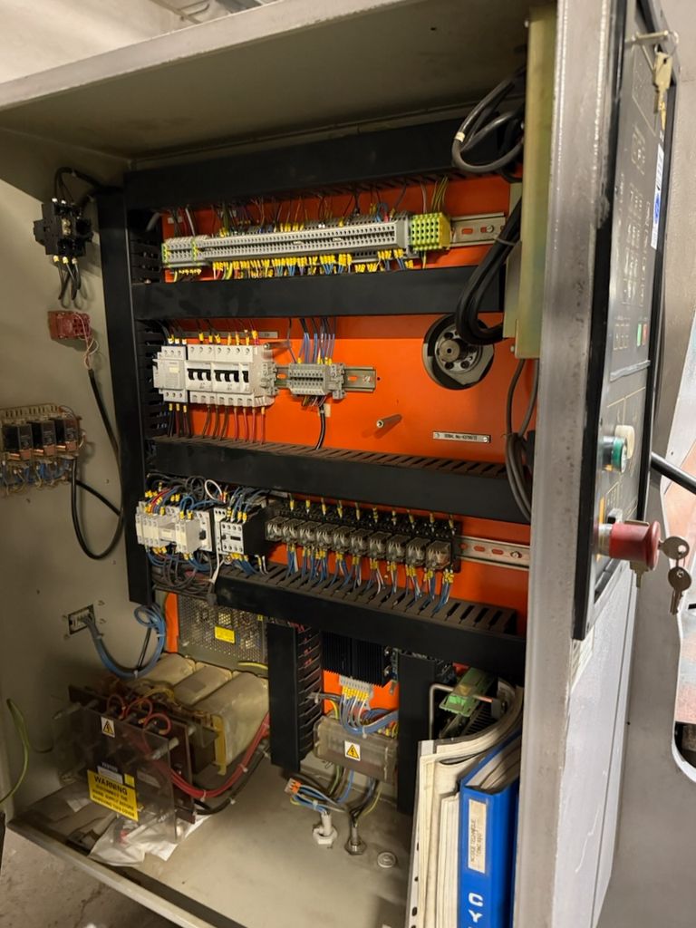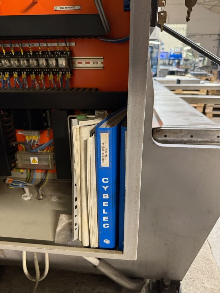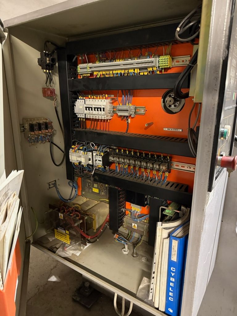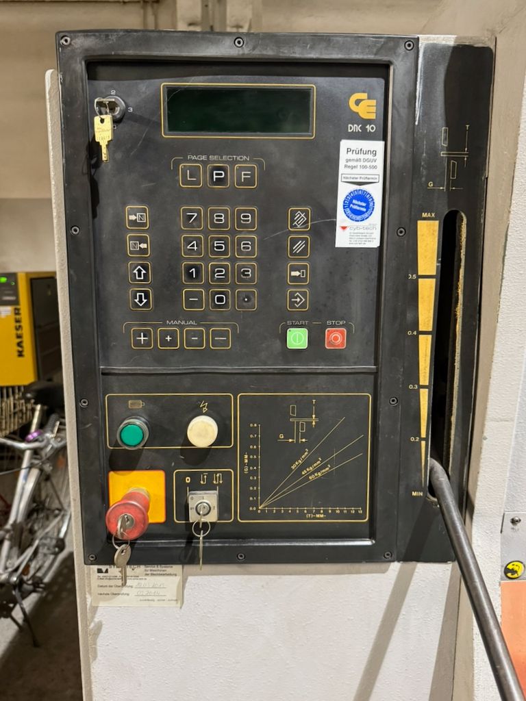 Einsatz. Sie ist mit Cybelec DNC 10 Steuerung, Fußpedal, verstellbarem Hinteranschlag und drei vorderen