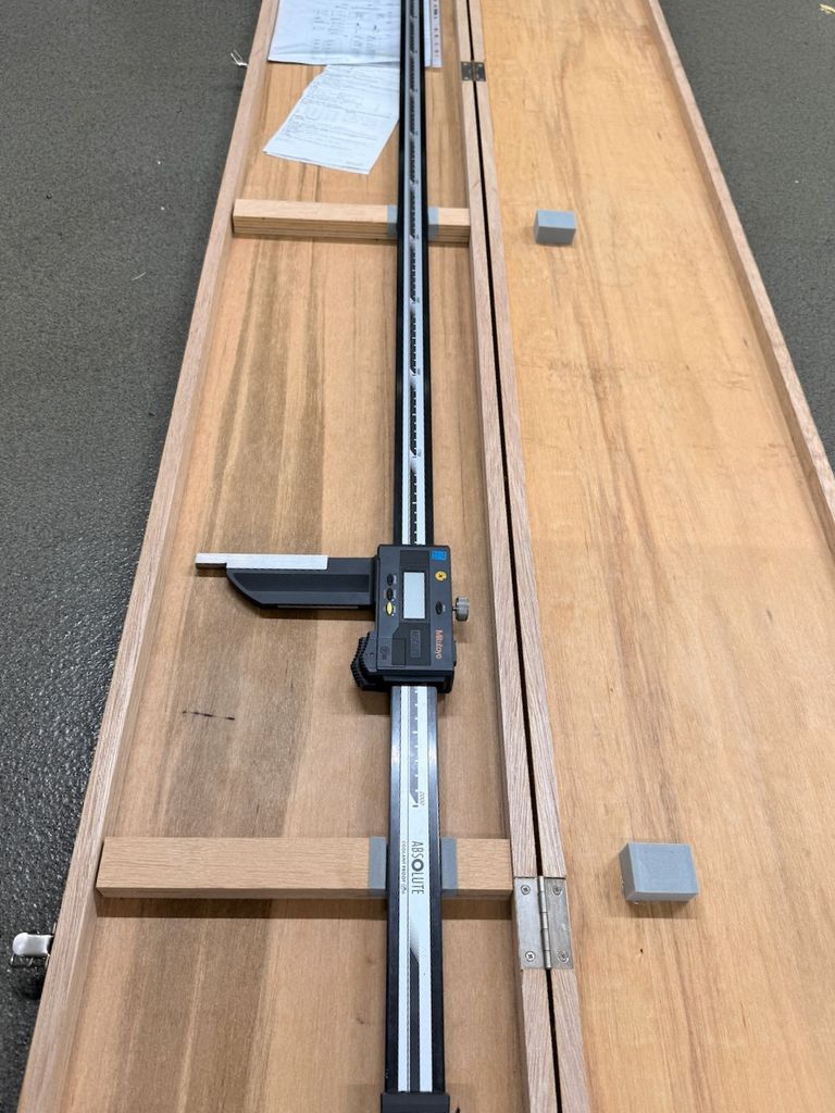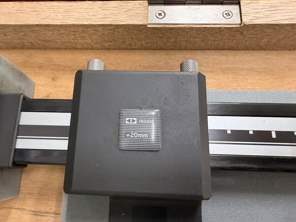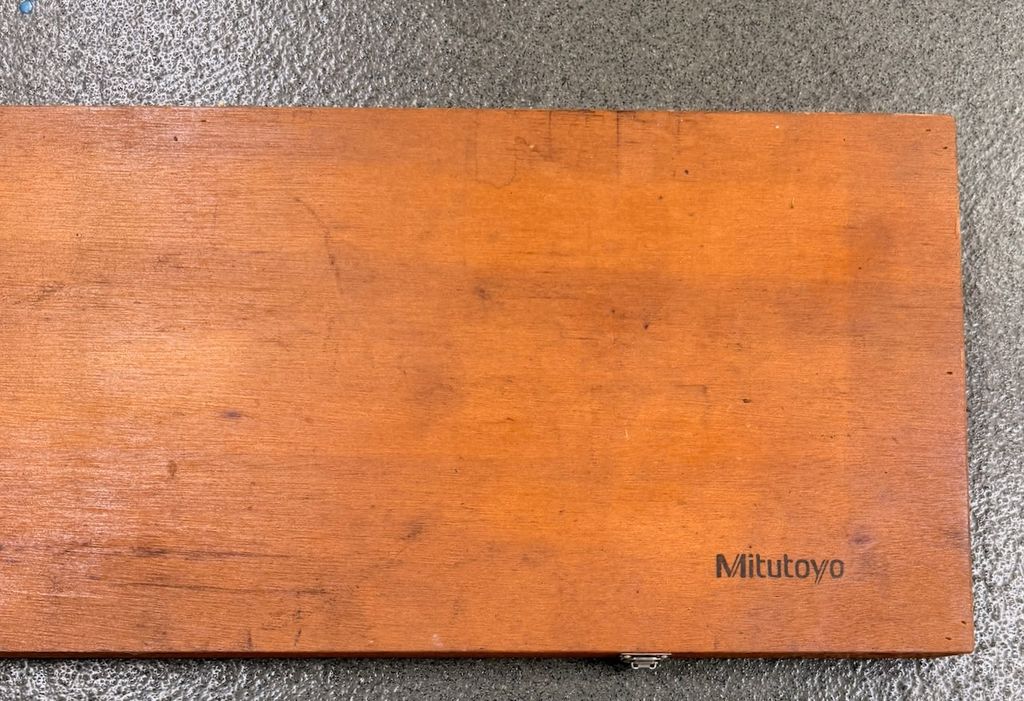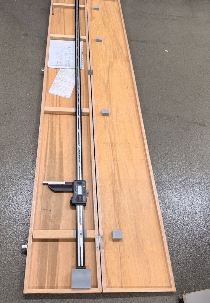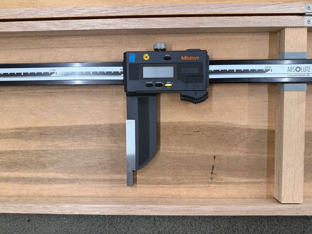 Digitaler Groß-Messschieber Mitutoyo ABSOLUTE Digimatic, Messbereich 0–2000 mm, im originalen Holztransportkoffer.