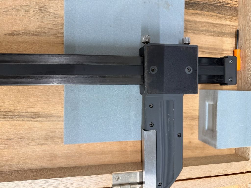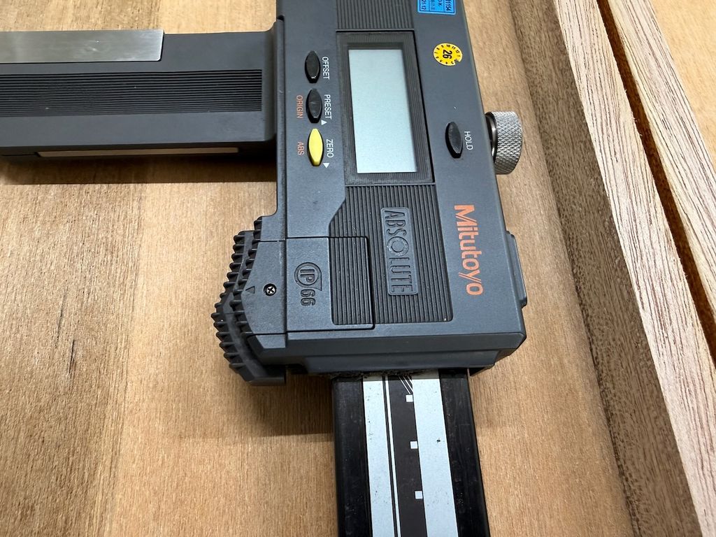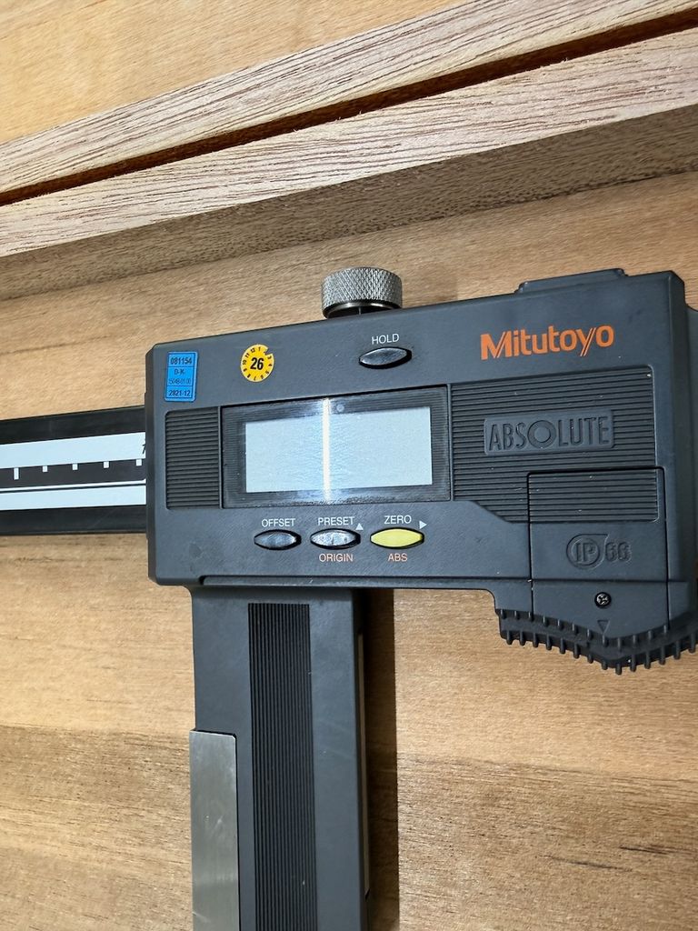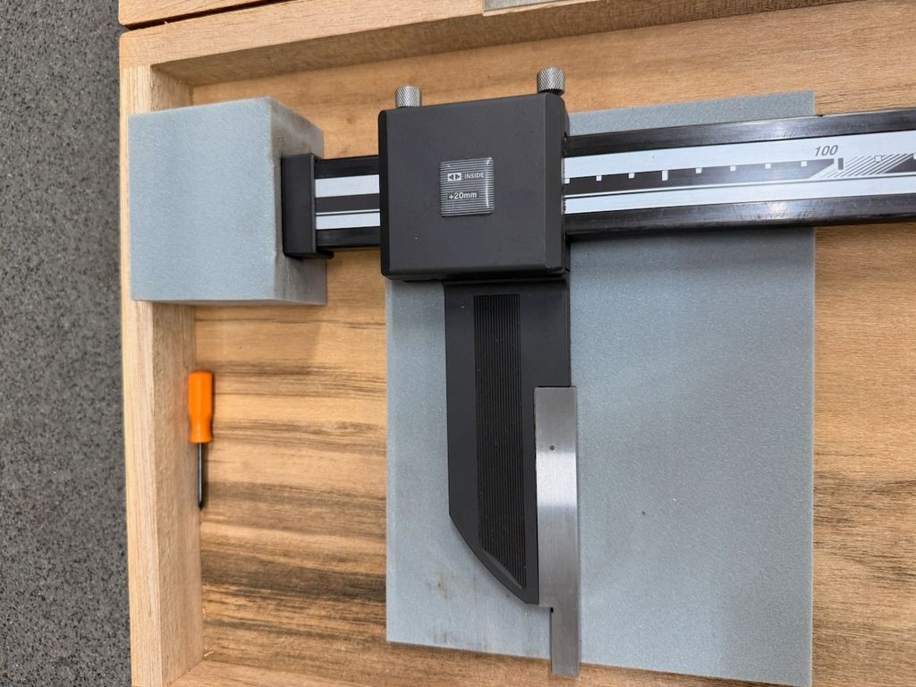 Digitaler Groß-Messschieber Mitutoyo ABSOLUTE Digimatic, Messbereich 0–2000 mm, im originalen Holztransportkoffer.