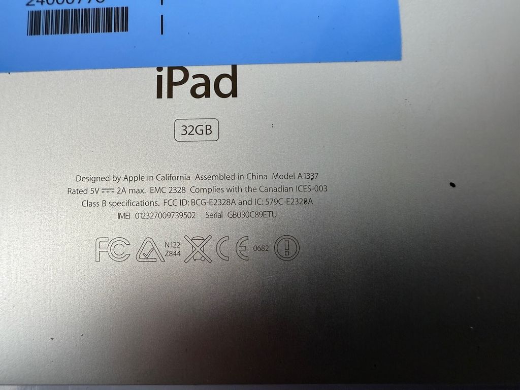 Display 9,7″ (1024×768); Speicher 32GB; Chip Apple A4; Schnittstellen 30‑Pin Dock & Kopfhörer; Konnektivität Wi‑Fi