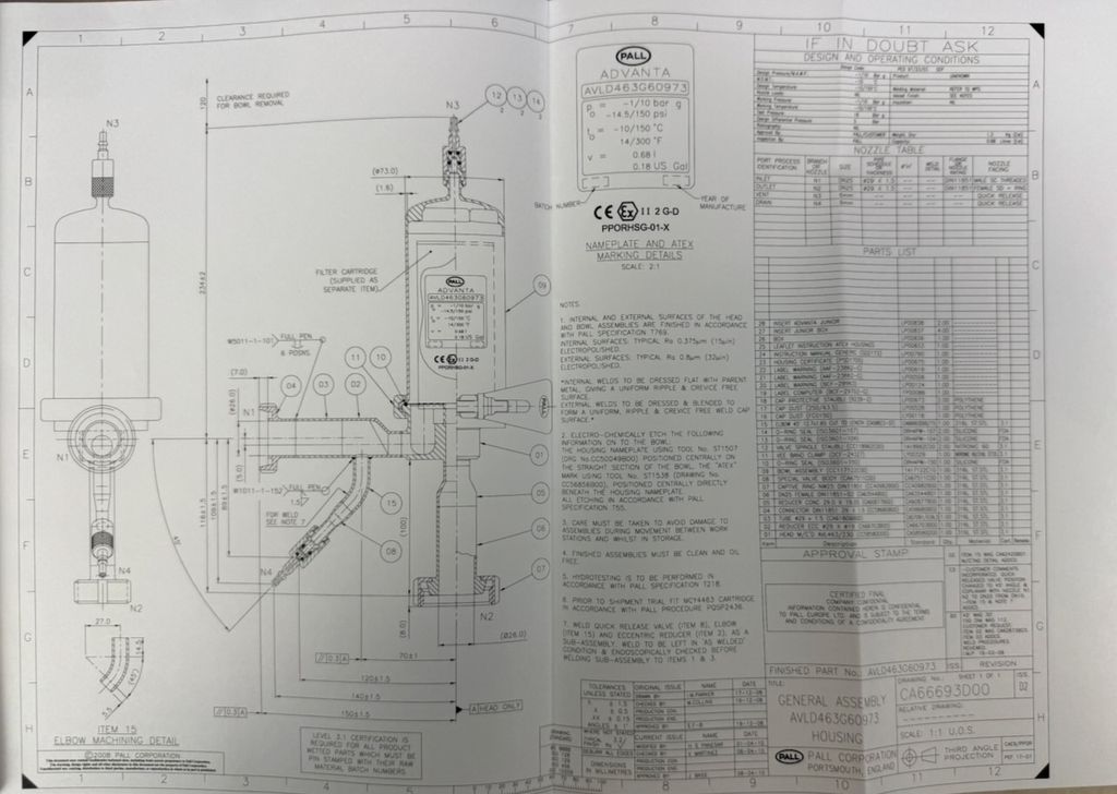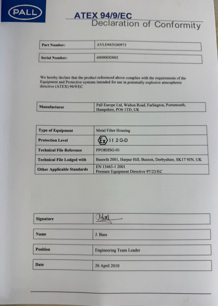 Pall AVLD463G60973 Edelstahl Filtergehäuse ATEX