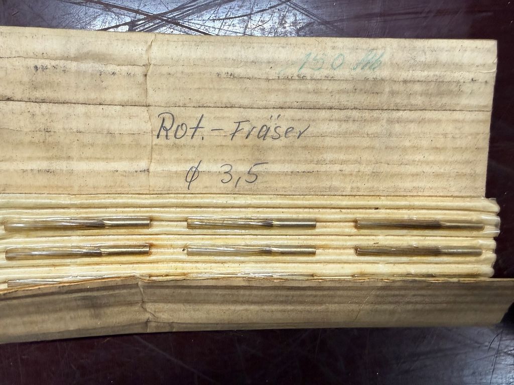 Vereinzelte kleinere Fräser (z. B. beschriftet „Rot-Fräser Ø 3,5“) in Mehrfachstreifen vorhanden.