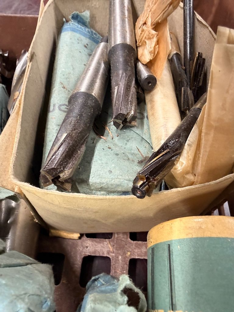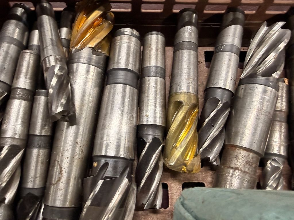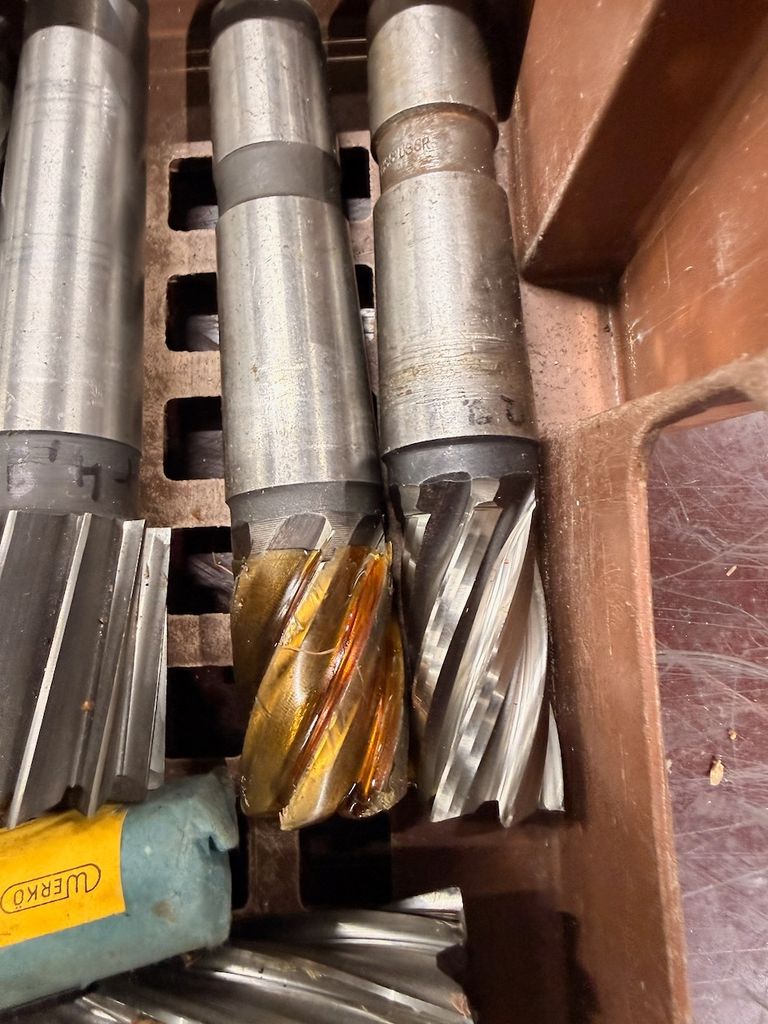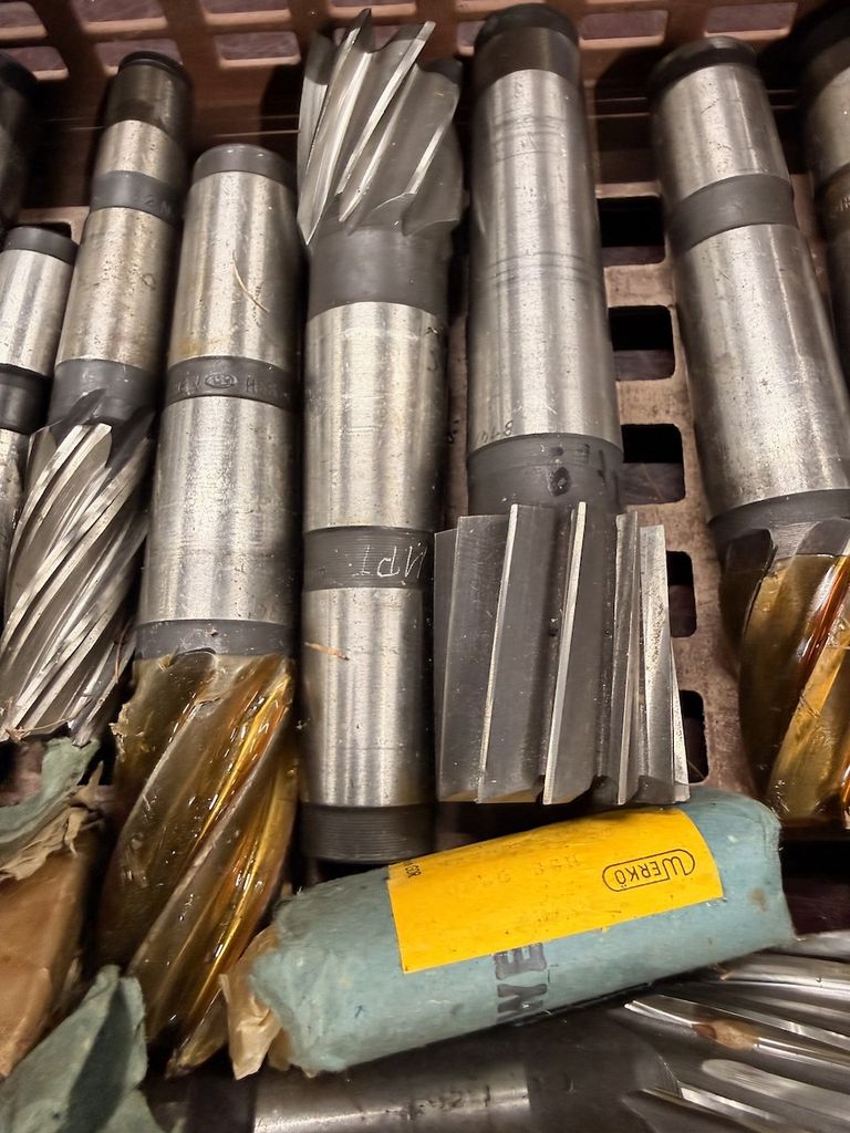 Der Posten besteht überwiegend aus größeren Schaft- und Walzenstirnfräsern mit Zylinderschaft, teils mit Schutzbeschichtung an den Schneiden.