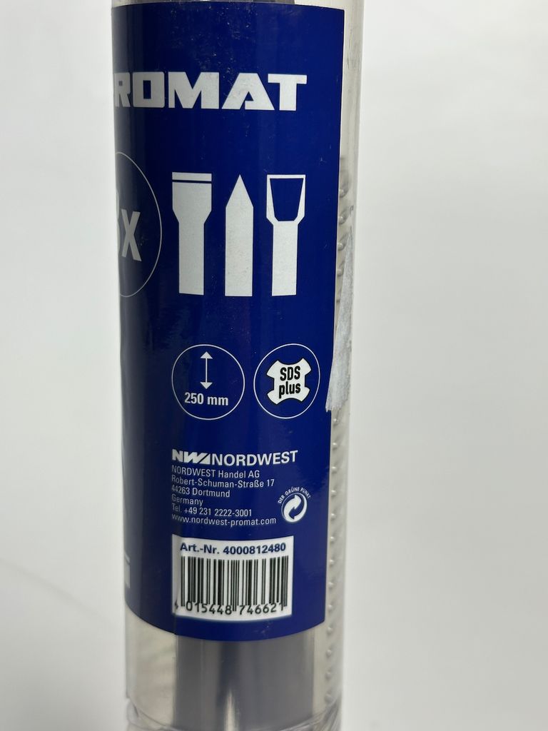 Das Promat Einsteckwerkzeugset SDS-plus 3-teilig ist ein robustes Profi-Set für Bohr- und Meißelarbeiten mit SDS-plus Aufnahme. Es enthält drei hochwertige Meißel – Spitzmeißel, Flachmeißel und Spatmeißel – jeweils mit einer Länge von 250 mm.
