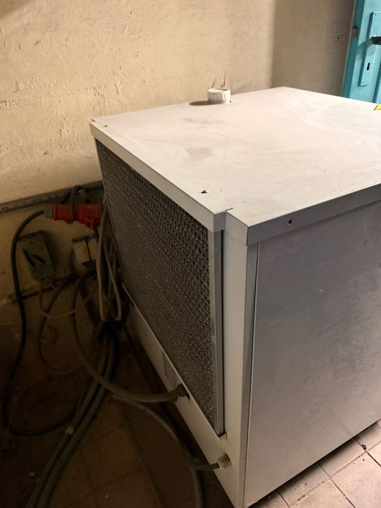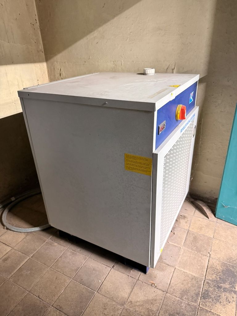 Industrieller Umlaufkühler von Rehsler Kühlsysteme, Typ TAE K20. Das Gerät ist zur Kühlung von Maschinen, Werkzeugen oder Prozessen mit Wasserkreislauf ausgelegt. Temperaturregelung erfolgt über ein digitales Bedienteil (Dixell). Das Aggregat war fest installiert und wurde zuletzt im laufenden Betrieb eingesetzt. Verkauf erfolgt aus Betriebsauflösung.