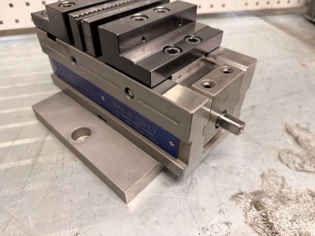 Zum Verkauf steht ein hochwertiger RÖHM NC-Kompaktspanner RKE-M 125 LV, ideal für CNC-Fräsmaschinen und präzise Spannaufgaben.