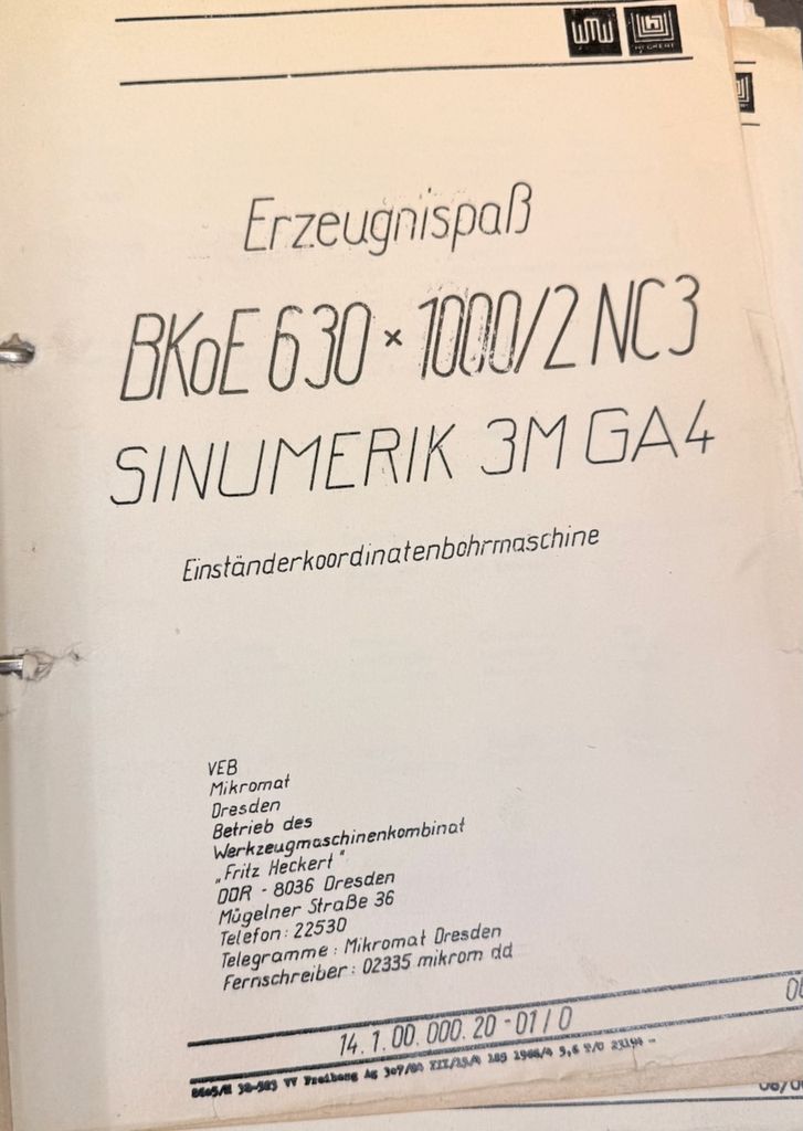 VEB Mikromat BKoE 630 × 1000 / 2 NC3 NC-Koordinatenbohrmaschine